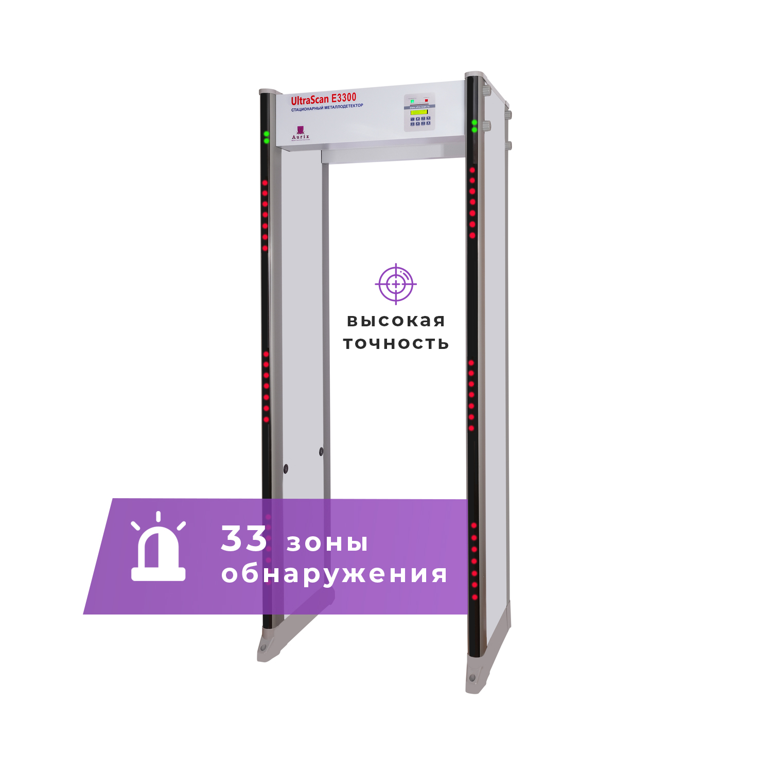 — В металлодетекторе UltraScan E3300 используется цифровой сигнальный процессор, который обеспечивает превосходное обнаружение металла. Любой металлический объект, расположенный на теле человека, обнаруживается с помощью 33 зон обнаружения и отображается с помощью светодиодов на торцевых частях панелей, указывая точное место обнаружения. Каждая группа зона обладает независимой возможностью обнаружения и настройки.