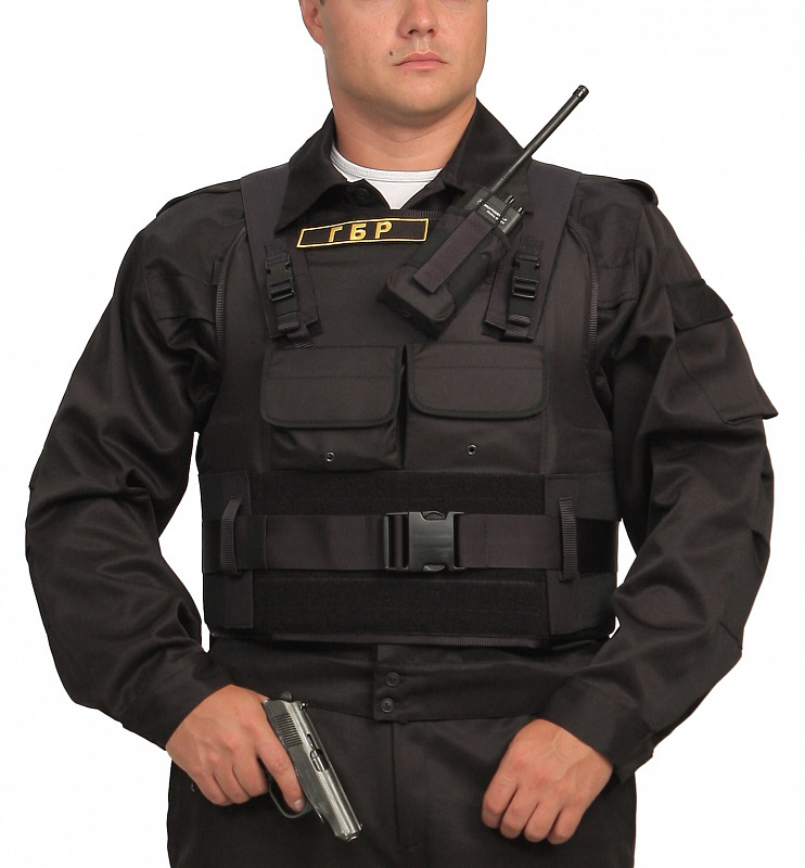Бронежилет «Комфорт 1-1» чехол «Охранник» предназначен для сотрудников охраны, выполняющих свои профессиональные обязанности для чего на бронежилете размещен набор карманов и элементов, состоящих из: