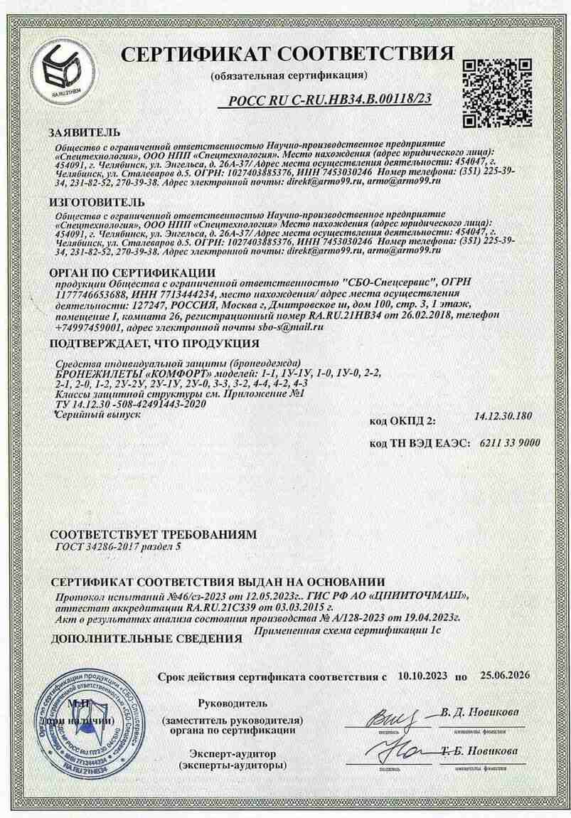 • Защита от оружия: от пистолета ПЯ / АПС / ПМ / холодного оружия / защита от осколков