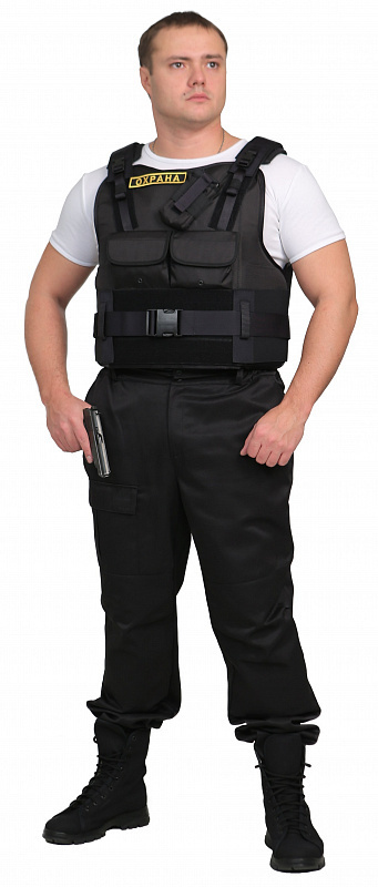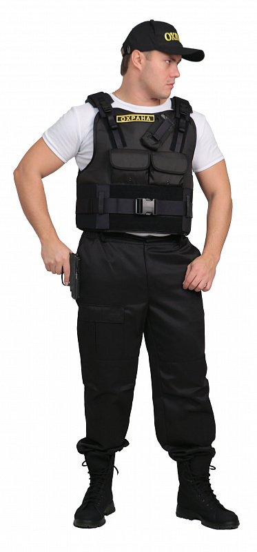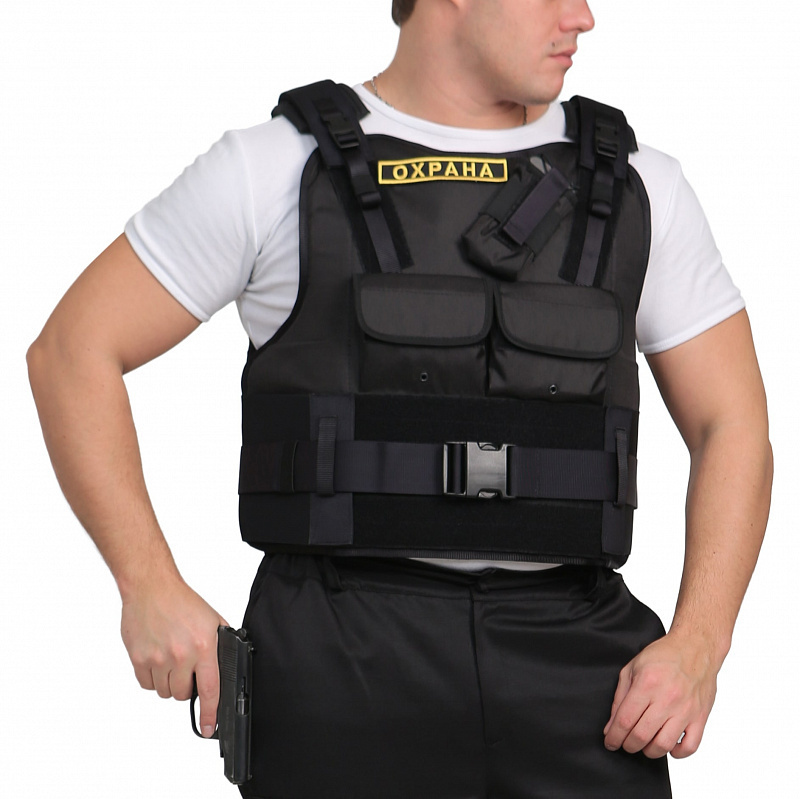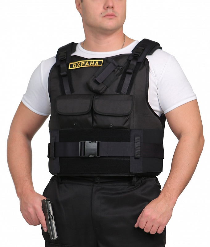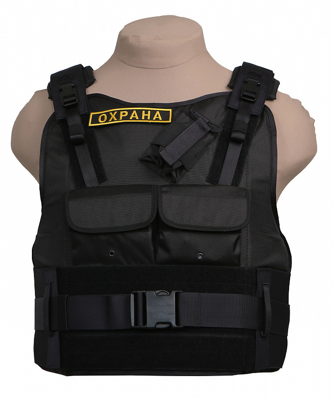 Бронежилет «Комфорт 4-4» чехол «Охранник» предназначен для сотрудников охраны, выполняющих свои профессиональные обязанности для чего на бронежилете размещен набор карманов и элементов, состоящих из: