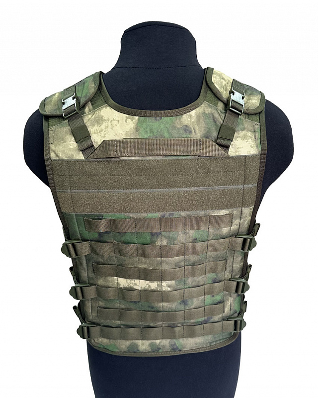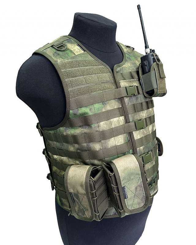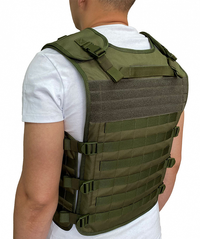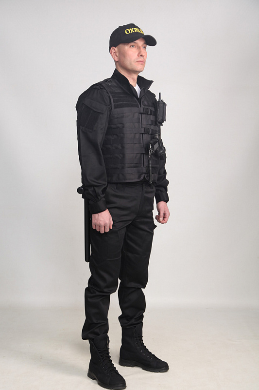— Бронежилет выполнен в виде бронированного разгрузочного жилета с центральной застежкой, изготовлен из высокопрочной ткани «Оксфорд 600PU», за счет чего долго сохраняет презентабельный внешний вид.