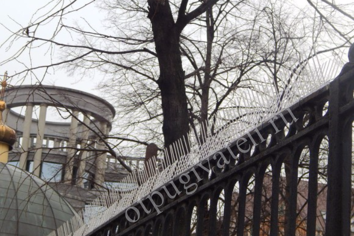 Целесообразно устанавливать противоприсадные шипы от птиц на крышах, карнизах, отливах, различных металлоконструкциях, парапетах, колоннах, памятниках и т.п.