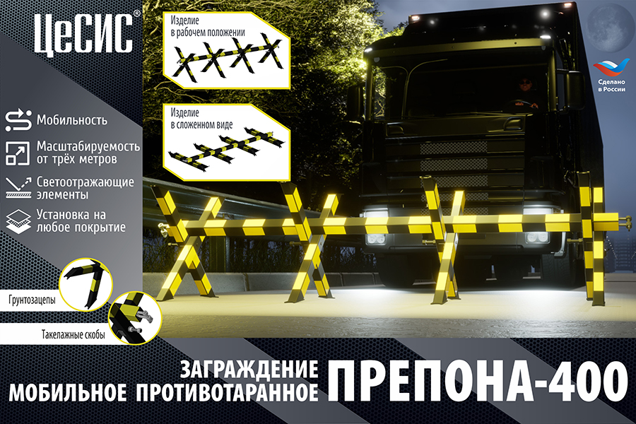 Препятствие способно остановить транспортное средство массой до 12 тонн, движущееся со скоростью 40 км/час.